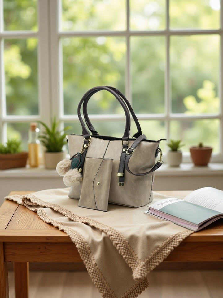 Women’s Tan Leather Tote Bag with Matching Wallet – Large Shoulder Handbag for Work & Everyday Use