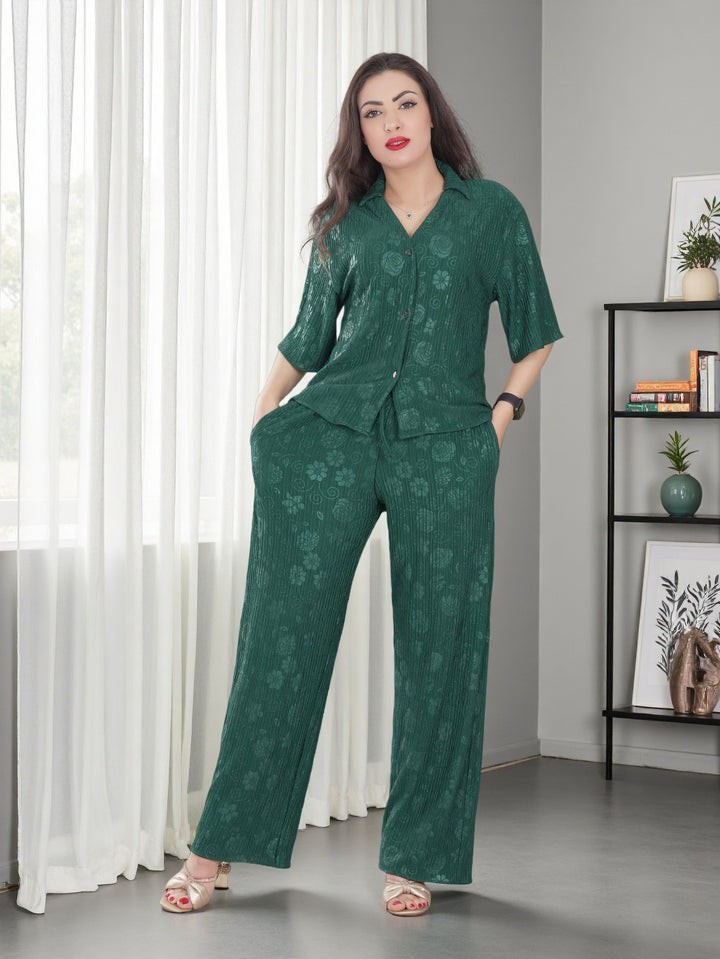 Women's Printed Co-ord Set with Shirt and Trousers
