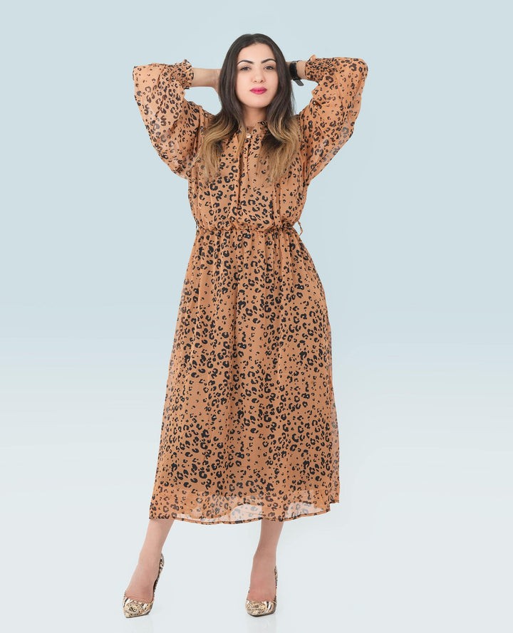 Women Leapord Print Mock Neck Midi Dress - Finelook