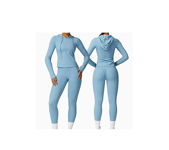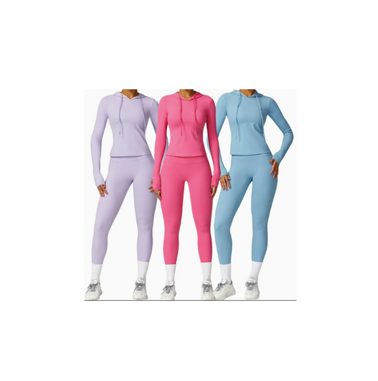 Women Sportswear Set Long Sleeve Crop Top with Leggings - Tracksuits